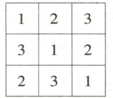 11. 将1, 2, 3 填入$3 × 3$ 的方格格中,要求每行、每列都没有重复数字,如图是一种填法,则不同的填写方法共有