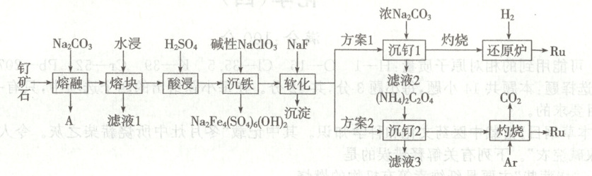 。(5)产生相同量的钌,方案 1 中消耗 H₂与方案 2 中产生 CO₂的物质的量比值为