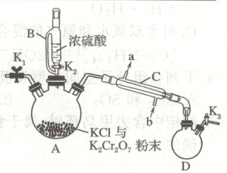 (2)该制备的反应机理为:浓硫酸先与氯化钾反应生成 HCl 气体,HCl 再与 K₂Cr₂O₇反应生成铬酰氯。写出 HCl 与 K₂Cr₂O₇反应生成铬酰氯的化学方程式: