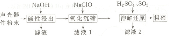 10. 从废弃的声光器件(${TeO_{2}}$,含${Al}$、${Cu}$、${SiO_{2}}$杂质)中提取粗碲的工艺流程如图,已知${TeO_{2}}$性质与${SO_{2}}$相似,氧化沉碲得${Na_{2}TeO_{4}}$,下列说法错误的是(
