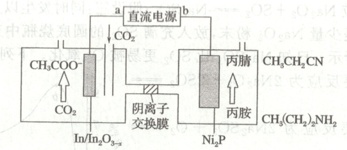 12. 某科研所以${CO_{2}}$与丙胺为原料实现了乙酸盐和丙腈的高选择性合成,该装置的工作原理如图所示。下列说法正确的是(