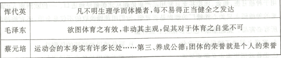 7.下表所示为新文化运动时期部分知识分子的体育主张。这些主张旨在