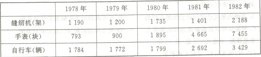 10.如表是1978—1982年登封县全县销售“大件”的情况统计。表中数据变化反映了