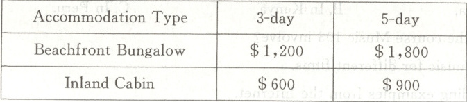 【语篇解读】 本文是一篇应用文。文章主要介绍了珊瑚岛的休闲与冒险套餐的相关信息。