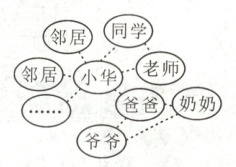 2. 在学习了《我们都是社会的一员》这一课时内容后,小华试着绘制了自己的社会关系网络图。通过观察小华的社会关系网络图,我们能够发现 (