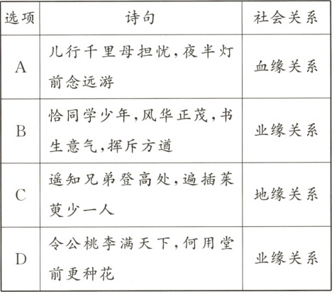 5.(跨学科·语文)下列诗句体现的社会关系对应不正确的是 (