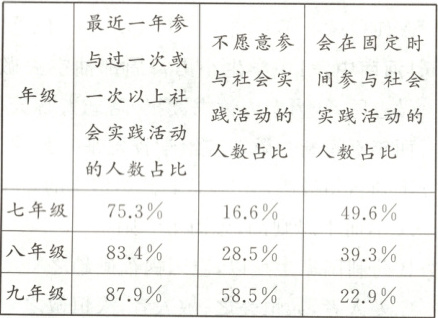 (1) 该班的几位同学在全校范围内就同学们的社会生活参与度及社会实践能力展开调查。下面是根据调查结果所做的部分总结,你能据此得出哪些结论?