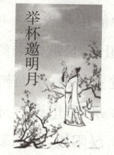 (3)画中的人物为李白,抬头看着天空中的一轮明月,右