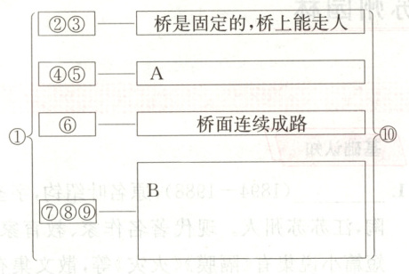 ①首先要说清楚:什么是桥?②如果说,能使人过河,从此岸到彼岸的东西就是桥,那么,船也是桥了;能使人越岭,从这山到对山的东西就是桥,那么,直升飞机也是桥了。③船和飞机当然都不是桥,因为桥是固定的,而人在桥上是要走动的。④可是,拦河筑坝,坝是固定的,而人又能在坝上走,从此岸走到彼岸,难道坝也是桥吗?⑤不是的,因为桥下还要能过水,要有桥孔。⑥那么,在浅水河里,每隔一步,放下一堆大石块,排成一线,直达对岸,上面走人,下面过水,而石块位置又是固定的,这该是一座桥了。然而严格说来,这还不是桥,因为桥面是要连续的,不连续,不成路。⑦但是,过河越谷的水管渠道,虽然具备了上述的桥的条件,而仍然不是桥,这又是何故呢?⑧因为它上面不能行车。⑨这样说来,矿山里运煤的架空栈道,从山顶到平地,上面可以行车,也是桥吗?然而又不是,因为这种栈道太陡,上面不能走人。⑩说来说去,桥总要是条路,它才能行车走人,不过它不是造在地上而是架在空中的,因而下面就能过水行船。
