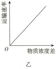 B.图甲中随着细胞外物质浓度的降低,运输速率会变慢