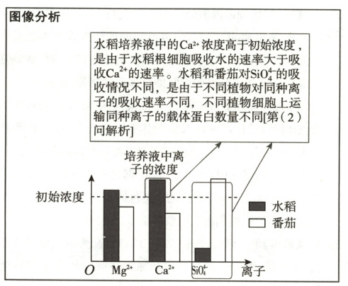 (2)水稻培养液中Ca²⁺浓度高于初始浓度,其原因是水稻吸收
