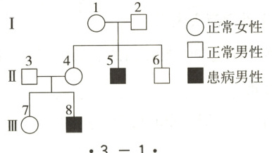 D.Ⅲ8与正常女性结婚生育正常女儿的概率为0