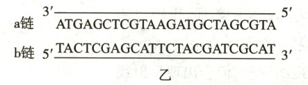 (4)为保证遗传信息传递的准确性,遗传信息的读取必须按一定方向。某DNA片段碱基序列如图乙所示,以b链为模板链合成肽链的序列为