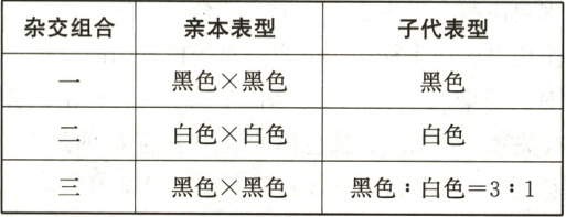(1)三 杂交组合三中黑色和黑色个体杂交出现了3∶1的性状分离比,据此可判断小鼠的黑色对白色为显性(或杂交组合三中黑色和黑色个体杂交出现了性状分离,说明黑色为杂合子,杂合子表现的性状为显性性状)