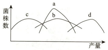 (3)如图曲线a表示使用诱变剂前青霉菌菌株数和产量之间的关系,曲线b、c、d表示使用诱变剂后青霉菌菌株数和产量之间的关系。据图分析: