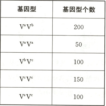 (4)基因频率=某种基因的数目÷控制同种性状的等位基因总数,故Vᵃ%=(200×1+50×2+100×1)/[2×(200+50+100+150+100)]≈33.3%。