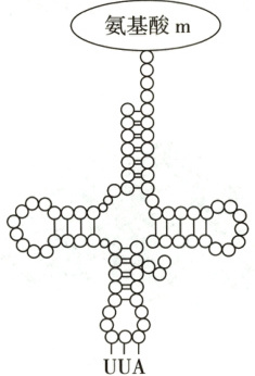 28. C[解析]tRNA 分析题图可知,该tRNA中有部分双链片段,存在碱基互补配对现象,A错误;根据碱基互补配对原则,氨基酸m的密码子是UAA,B错误;一种tRNA只能识别并转运一种氨基酸,C错误;组成RNA的单体是核糖核苷酸,tRNA是由许多个核糖核苷酸构成的,D正确。