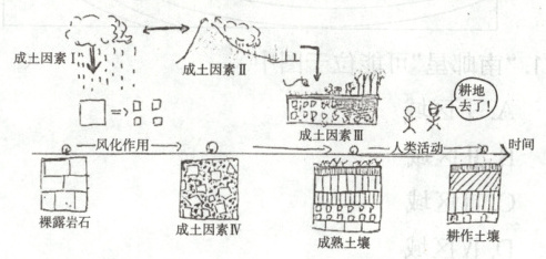 21. 如图为学生自主绘制的土壤形成过程及影响因素示意图。形成图 2 所示土壤空间差异的主要因素是 (