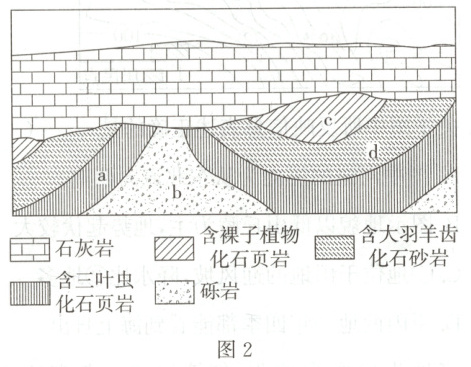 年),图 2 中 a,b,c,d 代表不同地层。据此完成 3~