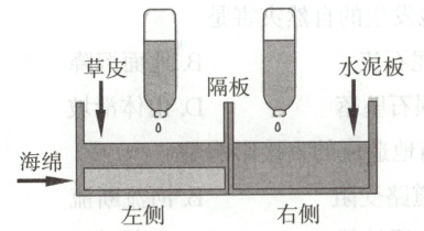 步骤:(1)在水箱中隔板左侧放置适量厚度的海绵和草皮,隔板右侧放置水泥板;