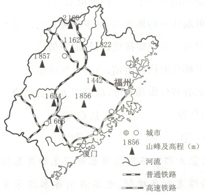 2023年9月,福厦高铁正式开通运营,这是我国首条设计时速350km的跨海高铁。如图示意福建省铁路线分布。据此完成37,38题。