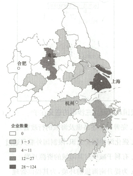 高端航运服务业主要从事航运交易、海事融资、海上保险、海事仲裁、船舶经纪、风险管理、货运代理、航运信息咨询、航运培训等方面服务。 如图为 2018 年长三角地区高端航运服务企业数量分布图。 读图完成 37, 38 题。