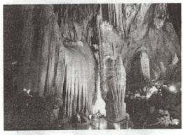 叶圣陶先生在《记金华的双龙洞》一文中写道:“……蜿蜒在洞顶的双龙,一条黄龙,一条青龙。我顺着他的指点看,有点儿像。其次是些石钟乳和石笋,这是什么,那是什么……这些石钟乳和石笋,形状变化多端,再加上颜色各异,即使不比作什么,也很值得观赏。”如图为金华双龙洞洞内(部分)景观图,完成14,15题。