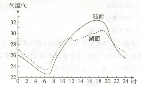 14. 如图,示意某日陆面和湖面气温的日变化。该