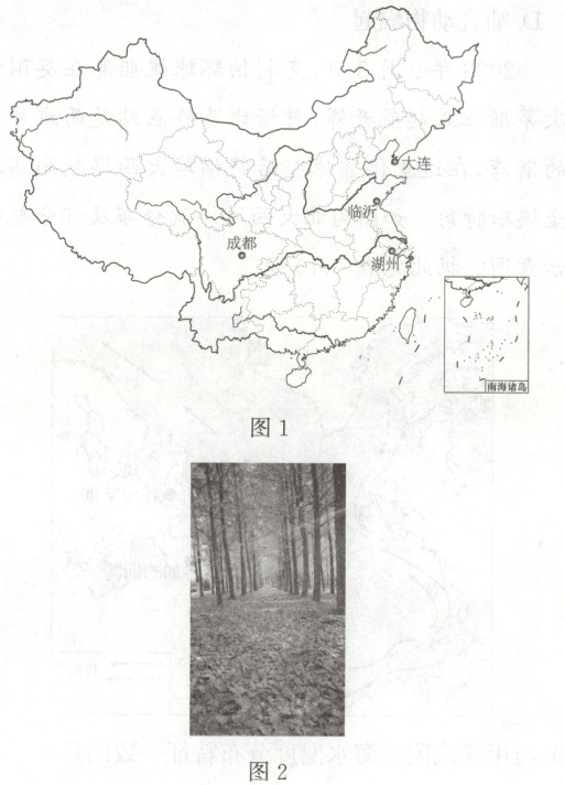 赏地分布图,图2为大连旅顺银杏大道景观,据此完