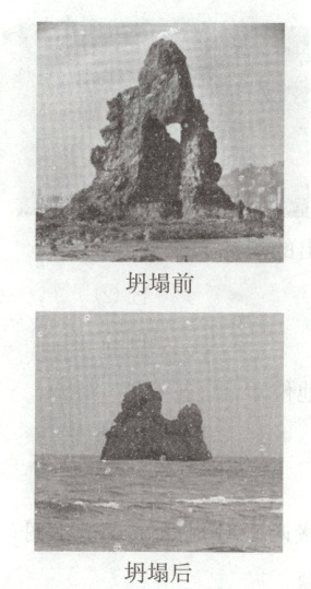 雨交加的夜晚“石老人”上半部分自然坍塌,现已被人