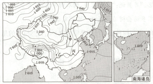 17 C 【解析】气象灾害 由材料并结合所学知识可知,此时为秋末冬初,中国陆地上大部分地区被冷高压所控制,受强冷空气影响,多剧烈降温和大风天气,易形成寒潮灾害,C正确;洪涝灾害、台风灾害都是夏秋季节易出现的灾害,A,D错误;南方地区等压线稀疏,水平气压梯度力小,天气晴好,风力较小,B错误。