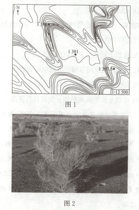 敦煌地处河西走廊西端,年降水量约40 mm,蒸发量超过2 400 mm,土地盐碱化问题突出,风沙活动频繁,多风成地貌(图1),为适应和改善当地恶劣的生态环境,2019年“蚂蚁森林”与中华环境保护基金会、甘肃阳光国家级自然保护区合作,在敦煌种植了耐盐碱植物梭梭(图2)1万亩(1亩≈666.67 m²),取得了良好的防风沙及改良土壤的效果。