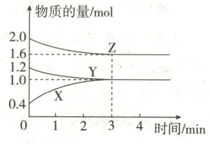 )A.该反应的化学方程式为$2\mathrm{Z}+\mathrm{Y}\rightleftharpoons3\mathrm{X}$