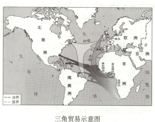材料一 16世纪初,第一批奴隶从非洲被直接运往美洲,万恶的黑奴贸易开始,持续时间长达三四百年……1680—1775年英国人向美洲各殖民地共输送黑奴300多万名,获利极为丰厚。1709—1787年间,英国从事海外贸易的船只增加了4倍,开往非洲的船只增长了11倍。造船业的发展,运往非洲交换黑奴的枪支、小商品的日益增多,引起连锁反应,促进了其他制造业的发展。