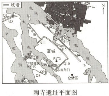 1. 如图是黄河中游地区的陶寺遗址平面图,遗址内分布着大型宫城、王族墓地、观象祭祀台、仓储区和手工业区等遗存。这反映了 (