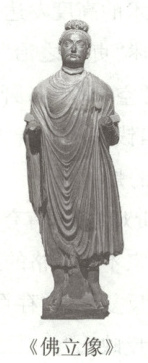 26. 如图是公元1—2世纪犍陀罗地区(今巴基斯坦北部及中亚细亚的阿富汗东北边境一带)的艺术代表作——《佛立像》。犍陀罗佛像一般的形象是赤足,身着通肩式袈裟,衣纹厚重,神情庄严肃穆又饱含悲悯,具有古希腊、罗马雕塑的特征,也被称为“希腊化的佛像”。这说明犍陀罗佛像 (