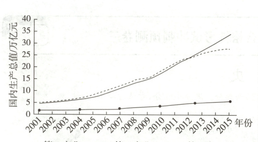 23. 根据国家统计局数据,2001—2015年中国三大产业国内生产总值变化,如下图所示。对图示解释合理的是
