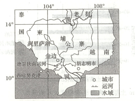 2024年8月,柬埔寨德崇扶南运河开工建设。下图为柬埔寨及周边地区和德崇扶南运河位置图。据此完成7~8题。
