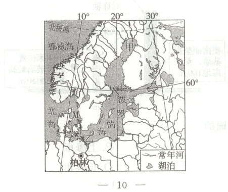 地处中高纬度的波罗的海(下图),在气象、水文等方面不仅与外部海域差异显著,而且内部的差异也很大。M表示波罗的海流入北海的洋流,N表示北海流入波罗的海的洋流。据此完成10~12题。