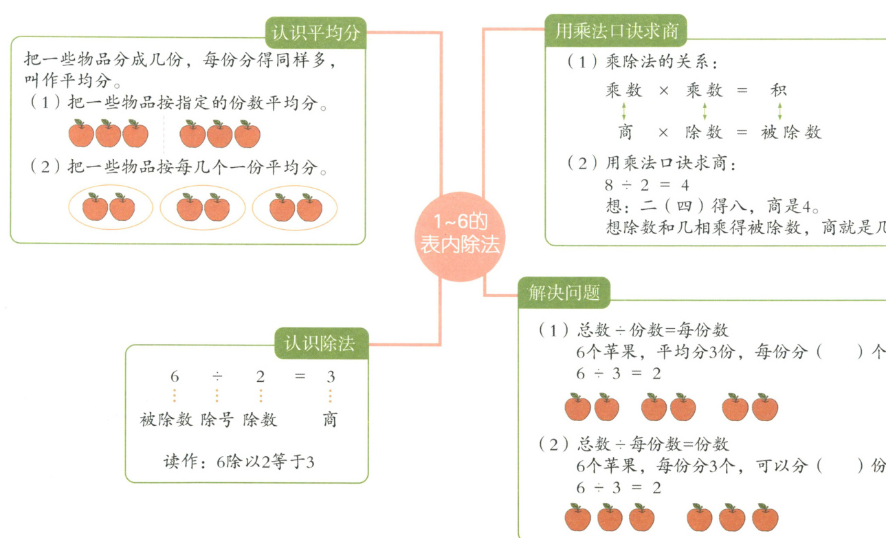 2. 对于“$6$个苹果,每份分$3$个,可以分( )份”: