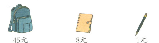 已知书包$45$元,笔记本$8$元,所以它们的原价为$45 + 8=53$元。