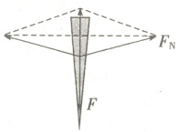 由受力分析图可知$\frac{\frac{0.05}{2}\ N}{F_{N}}=\frac{\frac{0.25}{2}\ mm}{\sqrt{2^{2}+\left(\frac{0.25}{2}\right)^{2}}\ mm}\approx\frac{\frac{0.25}{2}\ mm}{2\ mm}$,求得$F_{N}\approx0.4\ N$,故B正确,A错误;若该针尖停留在某位置,则与针尖接触的肌肉组织所受弹力大小相同,但方向不一定相同,故C错误;若针尖形状如题图丙,则随着针尖进入身体,针尖切线夹角越来越小,在合力$F$不变时,夹角越小,$F_{N}$越大,故D错误。]