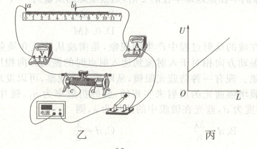 (4)改变鳄鱼夹的位置,用刻度尺测出两个夹子之间的铅笔芯的长度$L_{2}$,改变滑动变阻器的滑片位置,使电流表示数恢复成$I_{0}$,读出此时的电压表示数$U_{2}$。