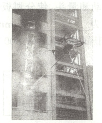 2. 如图为无人机灭火的工作场景,一质量为$M = 175 kg$的无人机工作时悬停于着火点正前方,其正下方竖直悬吊质量可以忽略不计的供水软管,水从地面进入供水管经过无人机后从其前端水平安装的高压水枪以速度$v = 50 m/s$水平喷出。高压水枪喷口处的横截面积为$S = 3 cm^2$,水的密度为$\rho = 1.0 × 10^3 kg/m^3$,重力加速度取$g = 10 m/s^2$,供水管的横截面积与高压水枪相同。则空气对无人机的作用力大小约为 (