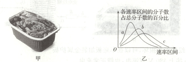 B.图乙为气体分子速率分布曲线,加热前自热米饭盒内气体所对应的曲线为$b$,由于盒内气体温度升高,密闭气体的分子速率分布曲线可能会变成$a$曲线