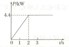 5. 用起重机将质量为$200 kg$的重物由静止沿竖直方向吊起,重物先匀加速上升,起重机输出功率达到额定功率$4.4 kW$后保持不变,整个过程中起重机输出功率$P$随时间$t$的变化关系如图所示。不计空气阻力,重力加速度$g$取$10 m/s^2$,下列说法正确的是 (