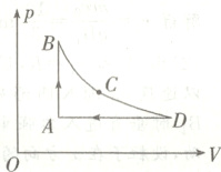 8.BC [根据理想气体状态方程可得$p = \frac{C}{V}· T$,$A \to B$延长线过绝对零度,为等容线,气体做等容变化,对比发现$C$与绝对零度的连线和$D$点与绝对零度的连线,斜率减小,故体积$V$变大,$C \to D$气体体积变大,A错误;结合$A$可知,从$C$到$D$,气体体积变大,分子数密度逐渐减小,B正确;从$B$到$C$,气体等温降压,可知内能不变,体积增大对外做功,故气体必须从外界吸收热量,C正确;从$A$到$B$体积不变,气体没有做功,从$B$到$C$气体对外做功,从$C$到$D$气体对外做功,从$D$到$A$等压降温,体积减小,外界对气体做功,如图所示为改画的$p - V$图线,图线和横轴所围的面积表示气体做的功,可知气体对外做功大于外界对气体做的功,故整个过程气体对外做正功,D错误。]