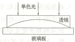块平板玻璃接触,用单色光垂直于透镜的平面向下照射,会观察到明暗