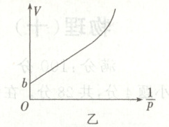 $ cm^3$。(结果保留1位小数)(3)另一位同学测出多组数据后画出$V-\frac{1}{p}$图像(如图乙所示),其截距为$b$,直线部分的斜率为$k$,则手