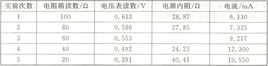 $\Omega$。由表格数据分析可知,该原电池的内阻随电流的增大而减小